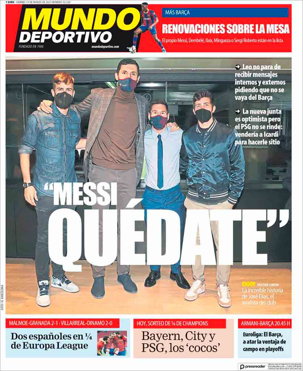 Aquí también hay que buscar el sorteo con lupa. También está en el faldón inferior, también en medio y también con un espacio reducidísimo. Pero atención al texto: “Hoy, sorteo de 1/4 de Champions. Bayern, City y PSG, los cocos”. Se diría que es el mismo texto de Sport, pero no. Sport tiene la delicadeza de especificar PARA QUIÉN son un coco esos tres equipos. Mundo Deportivo, en cambio, prefiere obviar el nombre del Madrid, eliminarlo de su portada. Una cosa es hablar de un sorteo de Cuartos en el cual NO está el Barça, y otro regodearse en el suplicio de que SÍ esté el Madrid. “Bayern, City y PSG, los cocos”. Los cocos ¿PARA QUIÉN, Mundo Deportivo? Venga, dilo, tú puedes. La primera letra es una erre. Es un sonido vibrante alveolar múltiple. Trata de pronunciarlo, Mundo Deportivo. Rrrrrr. Vamos. Rrrrrrr. Rrrrre. Rrrrrrrrre. Rrrrrrrea...