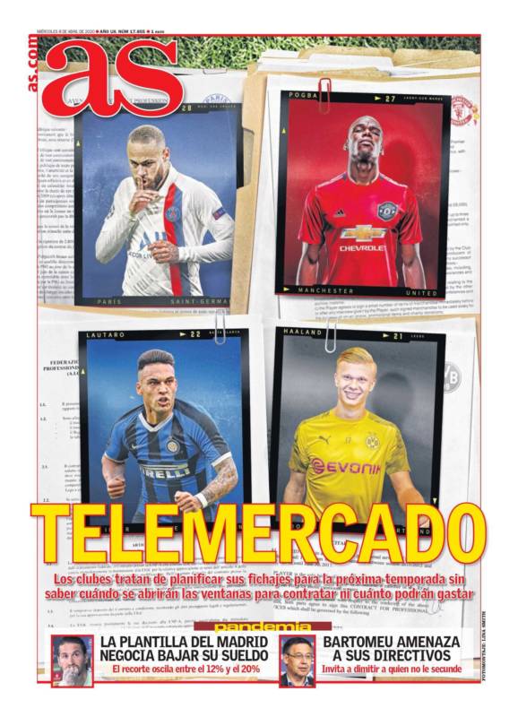 Es un intento, eso sí aplaudimos, de aportar un toque distinto a una primera plana en estos tiempos de crisis. Bastantes Días de la Marmota vivimos desde nuestros respectivos confinamientos para volver a escuchar la misma canción y ser el mismo espectador de los cacareados fichajes de Neymar, Pogba, Haland y Lautaro.