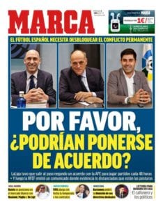 En Marca por el contrario siguen predicando en el desierto en aras de una armonía institucional entre los tres entes que regulan el fútbol español. Loable intento y más en los tiempos que corren en los que todo se supedita al yo, mi, me, conmigo que vendría a ser la versión Egoiste Platinum (Para el Hombre) del Orteguiano yo soy yo y mi circunstancia. Aplicado a Rubiales, Tebas y Aganzo se reduce a un castizo a ver quién orina más lejos.