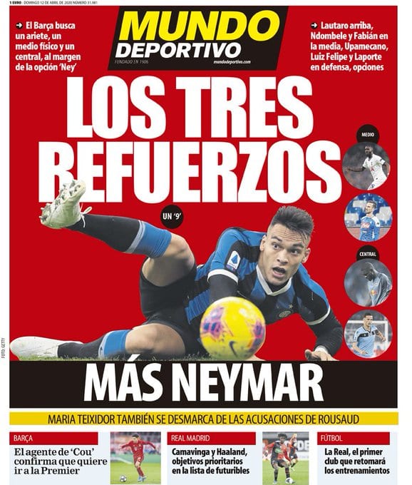 “Los tres refuerzos más Neymar”. Ayer un ERTE y hoy reventamos la caja, eso sí que es una resurrección financiera en toda regla. ¿Que se vuelve a reventar el tope salarial? ¡Qué más dará, a Neymar se le ficha por el artículo 33 y ya apañaremos después con Tebas! Cualquiera diría leyendo esta portada que un directivo está acusando a otros de haber metido la mano en la caja. Esperen, que sacamos la lupa y lo buscamos, seguro que algo dicen en portada… a ver, algo de humo sobre el Madrid… que el Barça todavía no ha vendido a Coutinho, otro fichaje millonario, pero eso no es impedimento para el XI de la 2020/21 que ayer descubríamos en este mismo Portanálisis… algo de la Real Sociedad… ah, aquí está, debe ser este enunciado que solo un seguidor del culebrón de la directiva blaugrana debe comprender: