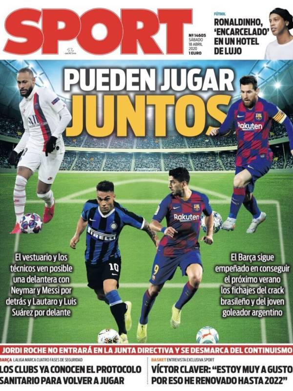 En esta fantasía nuestra absolutamente loca, Bartomeu le responde a Folch, invariablemente, que soleado, pese a que el día, o las semanas, pinte feo. Tan despejado está el día en Barcelona y tan en calma la mar salada, que Sport se dispone hoy a navegar a todo trapo, con Messi y Suárez acompañados de Lautaro y Neymar.