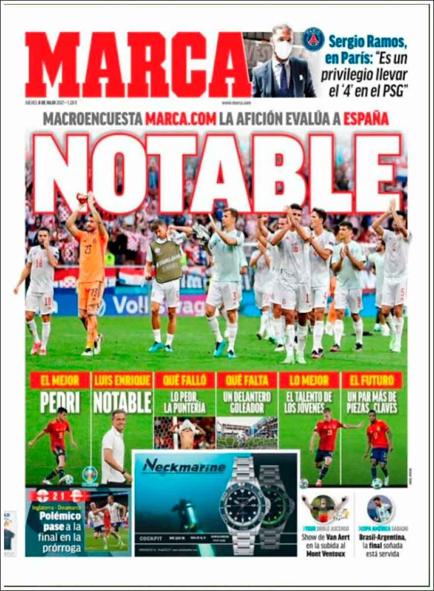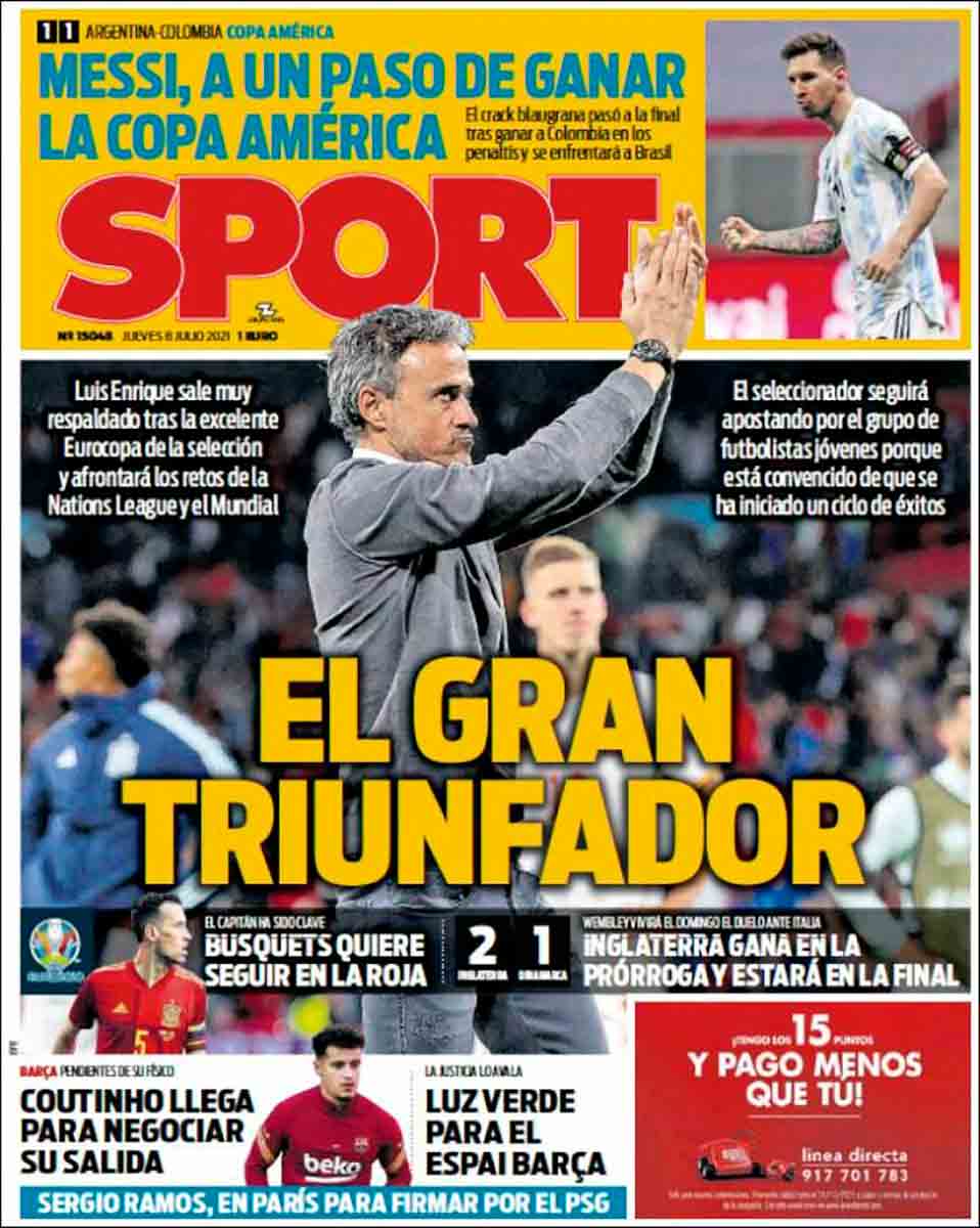 Observando las portadas se ve claramente el color azulgrana . No diría yo que no es merecido.En esta Selección de España brillaron Luis Enrique, Pedri,Busquet y Alba.