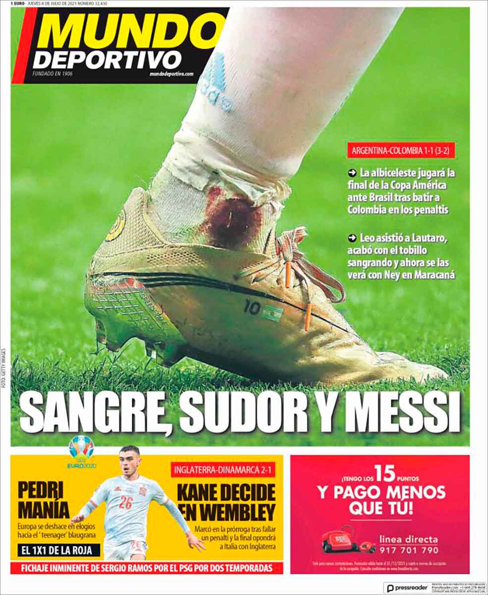 Os dejamos con las portadas, que seguro que las queréis ver. Por favor, los aprensivos que no miren la de Mundo Deportivo: se ve sangre.