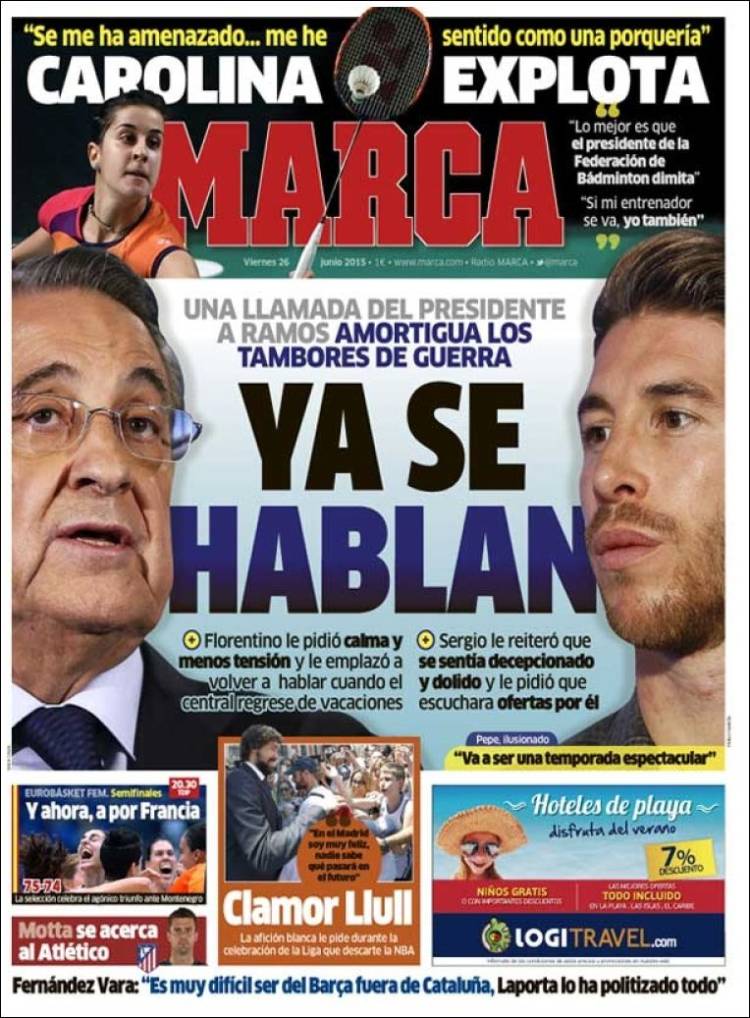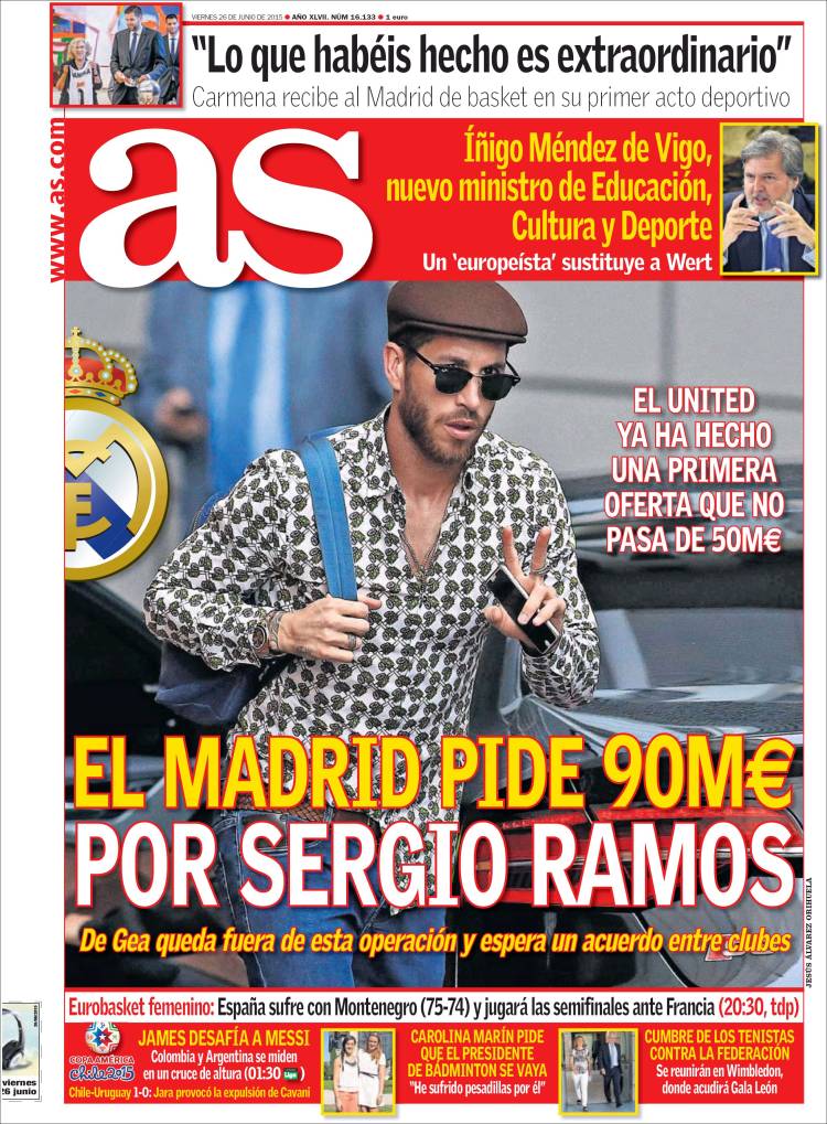 Quizá a fin de ayudarnos a amortiguar la pena por su hipotética partida, As trae a su portada una foto de Ramos en la que luce -es un decir- esa boina que a nadie gusta. "Lo tenemos muy hablado en el pueblo", decía José Sazatornil Saza en la mítica película de culto Amanece que no es poco, que ayer por cierto volvió a emitir TVE. "A nadie nos gustaba ese sombrero. Pregunte, pregunte si no en el pueblo. Luego, se casó usted con la Paddington, que ya se había casado antes, cuando había otras mujeres que no se habían casado nunca y podía haber elegido a otra. ¿No podría usted hacer como los otros sudamericanos, que unos días van en bici y otros huelen bien?"
