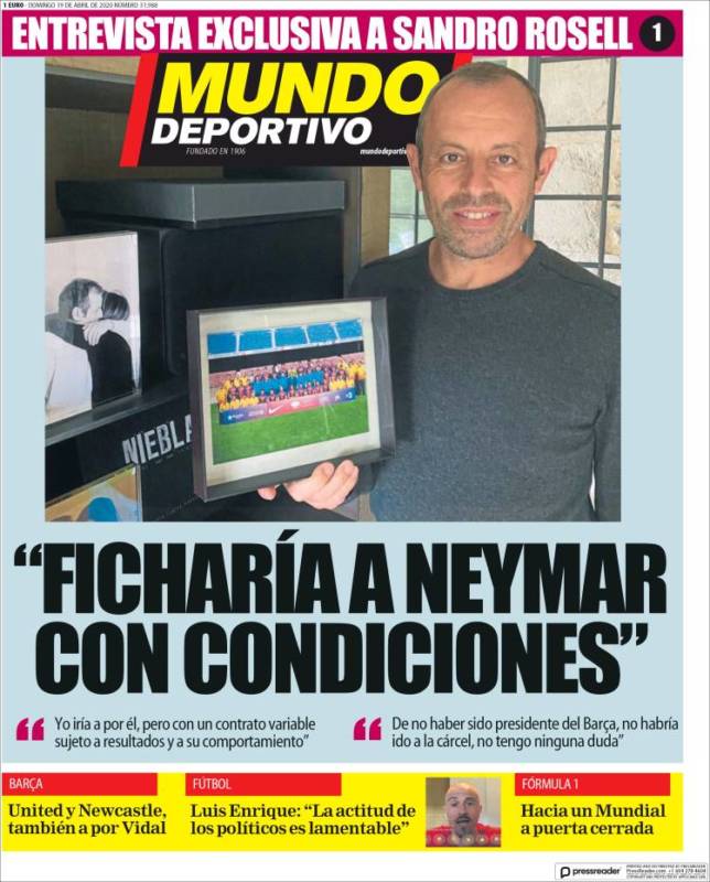 Los panfletos catalanes deciden dar sus portadas a delincuentes condenados o sin condenar. Rosell, el hombre que dicho a Neymar por unas cifras oficiales menos creíbles que los muertos por covid en China. Dice que si no fuera presidente del VARsa no hubiera ido a la cárcel. Que se vaya de vacaciones a Brasil cuando acabe el confinamiento a ver qué le dicen. El otro, el piños, el jugador con un historial de agresiones que no tiene ni migueli, en cuanto llegó al mes que un club se acabaron las expulsiones.