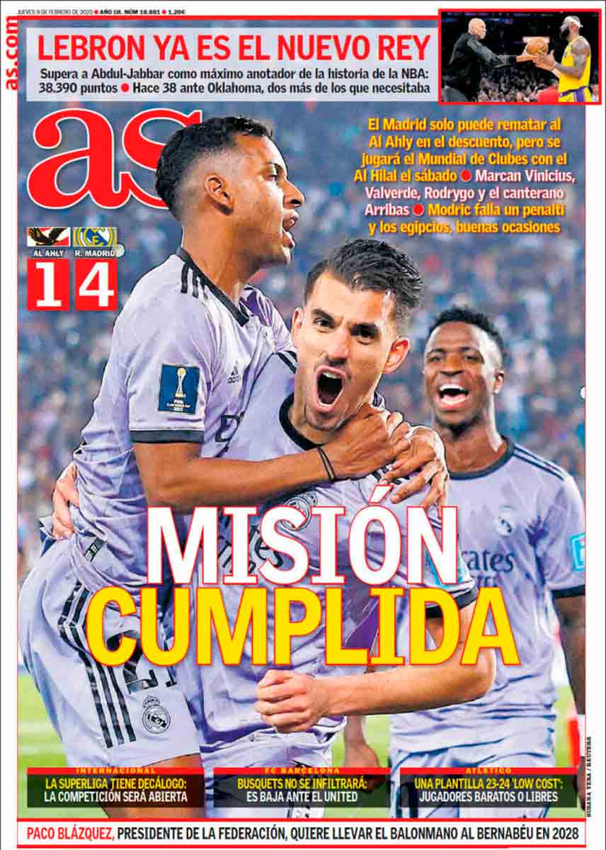 La portada de As la ilustra una foto de Ceballos sosteniendo a un Rodrygo extasiado tras el orgasmo del gol. Vini contempla la escena sin temor de que venga algún Alejo a pegarle un empujón.