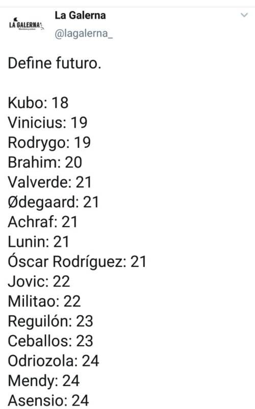 El otro día La Galerna escribió un tuit rozagante con el plantel madridista del futuro y me puse nervioso con ese posible fútbol de patio de colegio venidero. Todos esos niños madridistas son nuestro fútbol y nuestras chicas (nuestros chicos para ellas), como para no quererlos, como para no emocionarse y como para no agradecer que el Real Madrid, que la vida, nos conceda a estas alturas (en realidad a todas las alturas, siempre) otra oportunidad.