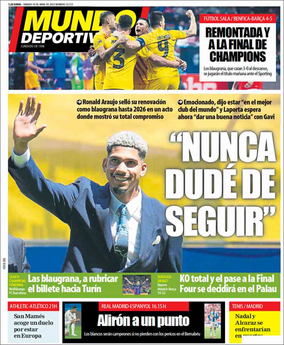 Mención aparte merece la renovación de Ronald Araujo ayer por el Barcelona, vendida por el club y saludada unánimemente por los medios de comunicación, como el jugador número 179 procedente de la Masía que se afianza en el primer equipo.