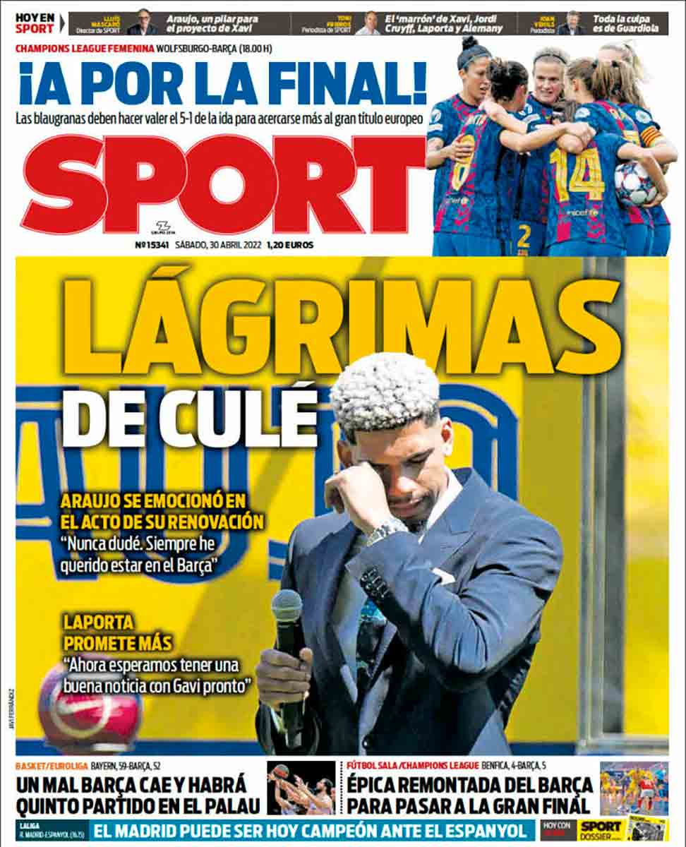 Así son las “lágrimas de culé” que cacarea emotivo cual tatuaje de JJ la portada de Sport.