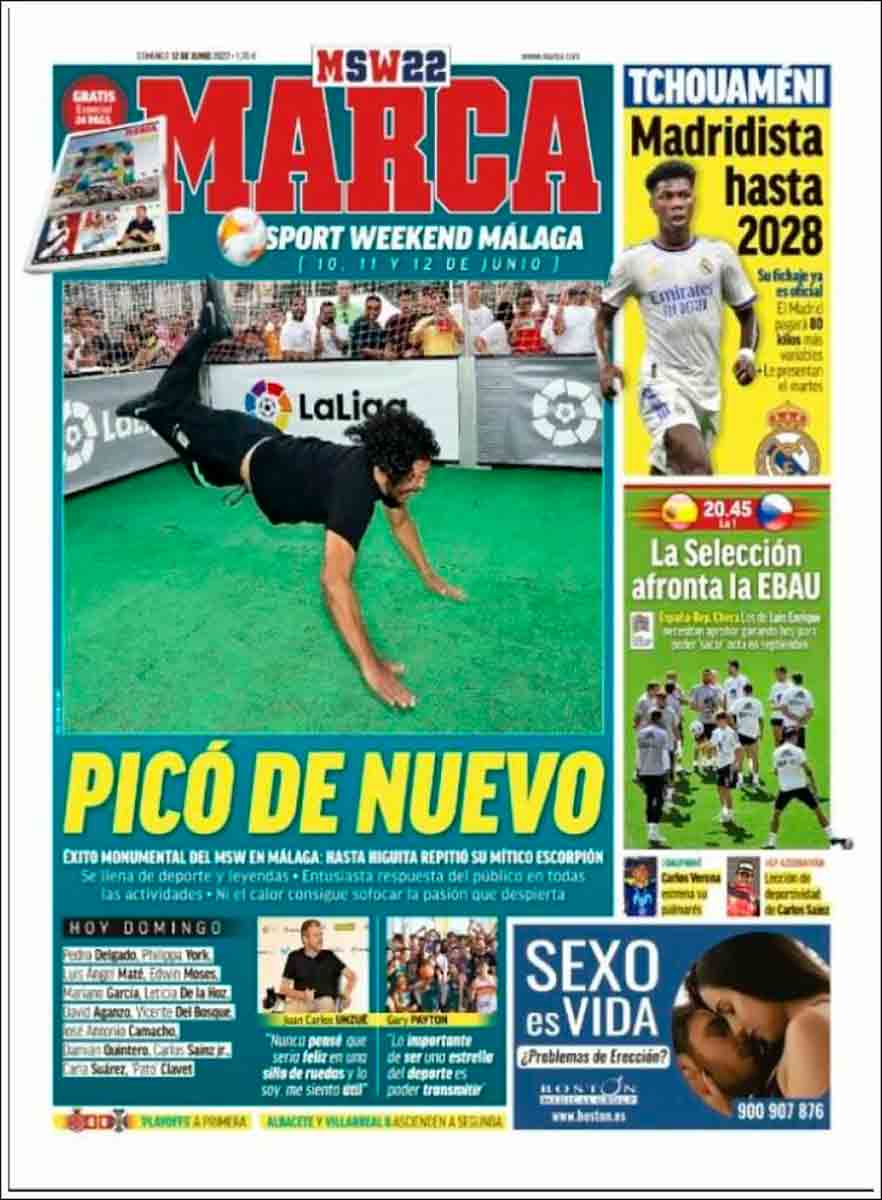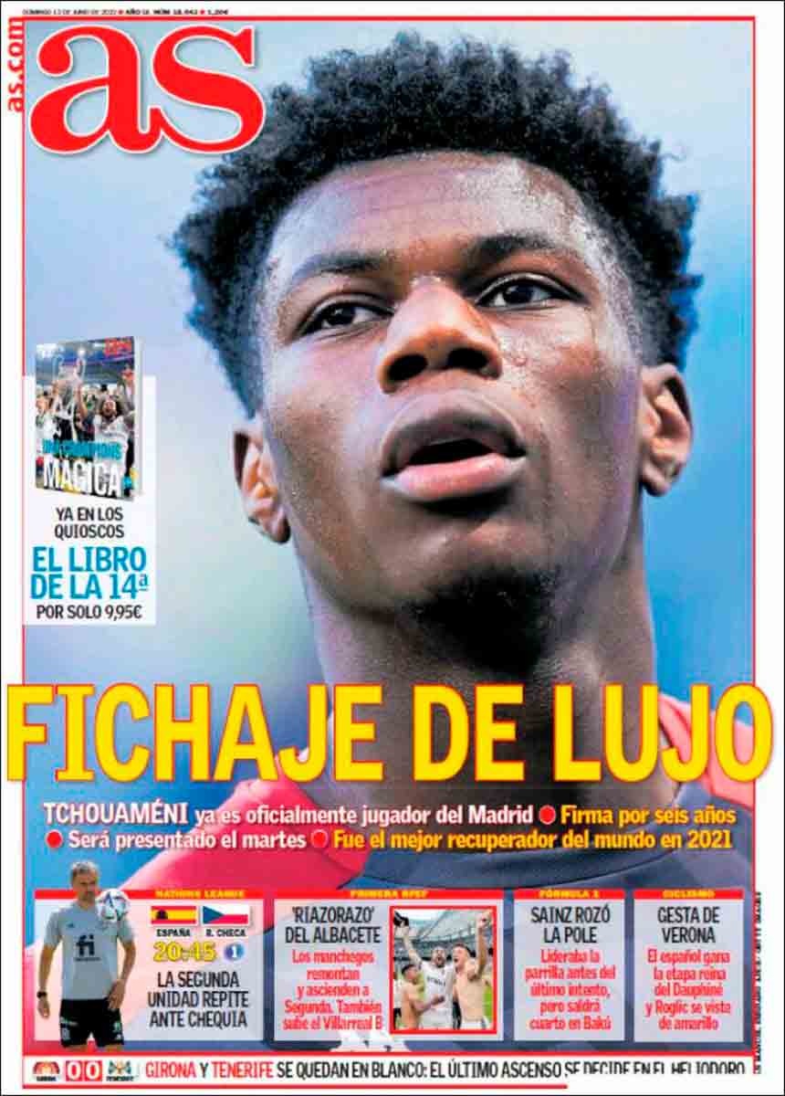 Frente a la realidad del Real Madrid, personificada en el día de hoy en Tchouaméni, el Barça cuenta con sueños, como resalta Mundo Deportivo en su portada. El sueño de Xavi es reunir a Pedri y a Bernardo Silva. Pero la mala gestión del club azulgrana en el pasado le impide cumplir los sueños del presente. Justo lo contrario que le sucede al Madrid.