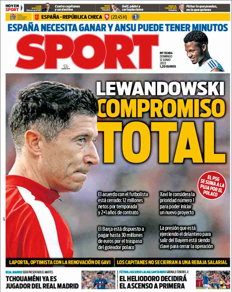 2. Tremendo lo del Sport, te cuentan en la portada que Lewandowski llegó a un acuerdo con la Farsa a razón de 12 millones netos por cada una de las dos temporadas que firmaría en principio, y justo debajo te dicen que los capitanes se plantean una rebaja salarial. En Cataluña uno se rebaja la nómina para que el que venga gane más que ellos, y yo que creí que después de Disney no había más cuentos de hadas.
