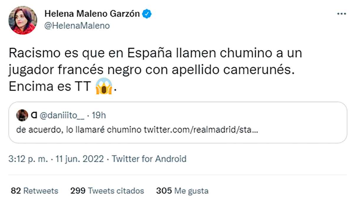 La falla en el pensamiento y la ausencia de sentido del humor llegan a un punto en el que alguien afirma que racismo es que en España llamen chumino a un jugador francés negro con apellido camerunés. ¿Es necesario o posible explicárselo? De nuevo, no.