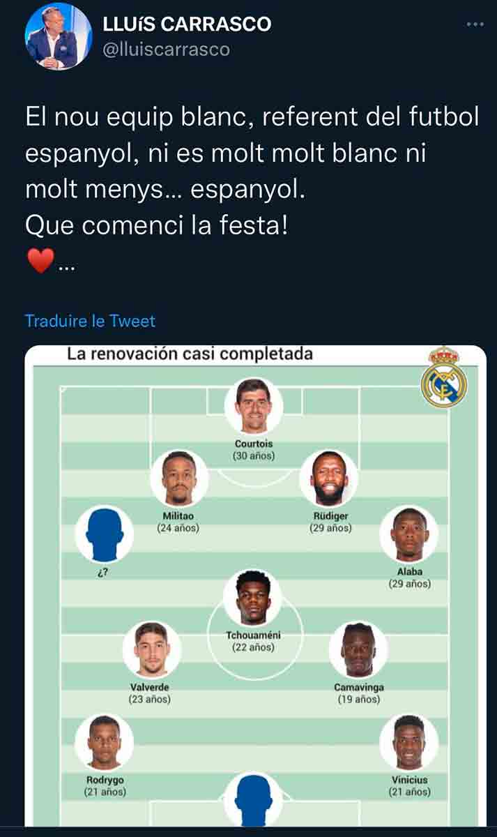 Por suerte, a los madridistas nos dan igual todas estas sandeces, es más, nos reímos mucho con ellas. Tchouaméni es un jugadorazo y a buen seguro que disfrutaremos mucho con él. Si queréis conocerle más a fondo, podéis leer este artículo de Ramón Álvarez de Mon que publicamos ayer en La Galerna. Además, Tchouaméni, su representante y su entorno han tenido el detalle de dar su palabra al Real Madrid y cumplirla, a pesar de las presiones sufridas.