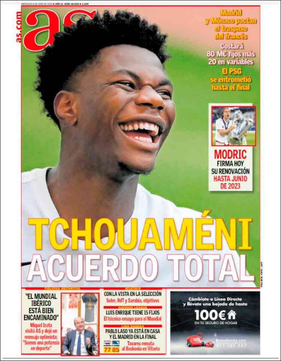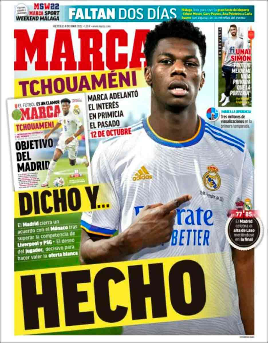 Buenos días. Hoy tenemos tantas cosas que contaros que no sabemos ni por dónde empezar. Tenemos a Tchouaméni a punto de firmar, si bien un elemental sentido de la prudencia, después de las cosas que nos han pasado últimamente en el mercado, tal vez no esté de más. Si en efecto en los próximos días (¿horas?) se hace oficial la contratación de portentoso medio del Mónaco, se confirmará que con los actuales campeones de Europa y España, más las incorporaciones de Rüdiger y del propio francés, estaremos formando un equipo como para seguir soñando hasta más allá de donde nos lleva la esperanza de vida en los países desarrollados.
