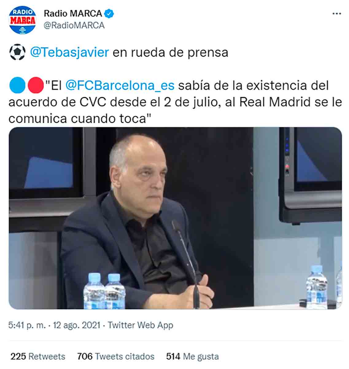 12. De risa lo de Roures haciéndose el ofendido con Lapuerta por mostrarse en la misma línea de rechazo que el Real Madrid a Tebas. Le dejará de avalar. ¡ Cuánto paripé !