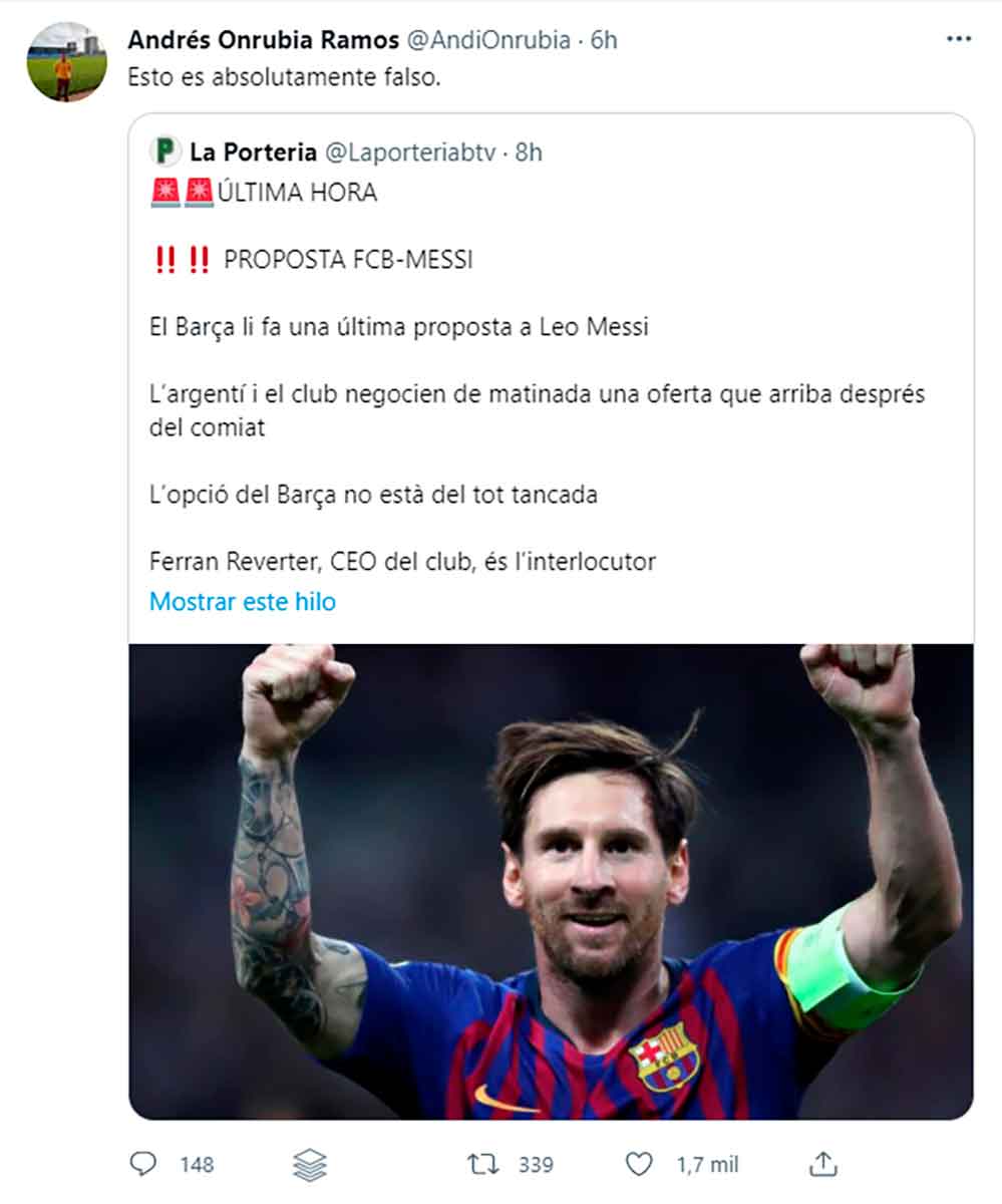 El alipori que estamos sufriendo con la marcha de Messi es bochornoso. Mientras a Leo se le ilumina la cara cuando escucha la palabra PSG y se le nubla cuando le hablan del Barça, los culés siguen arrastrándose, afirmando que el club aún no se ha rendido, que le han realizado una nueva oferta a Messi. Y claro, cuando alguien sensato les dice que no, los seguidores azulgranas le tratan con su habitual educación. Es el caso de Andrés Onrubia: