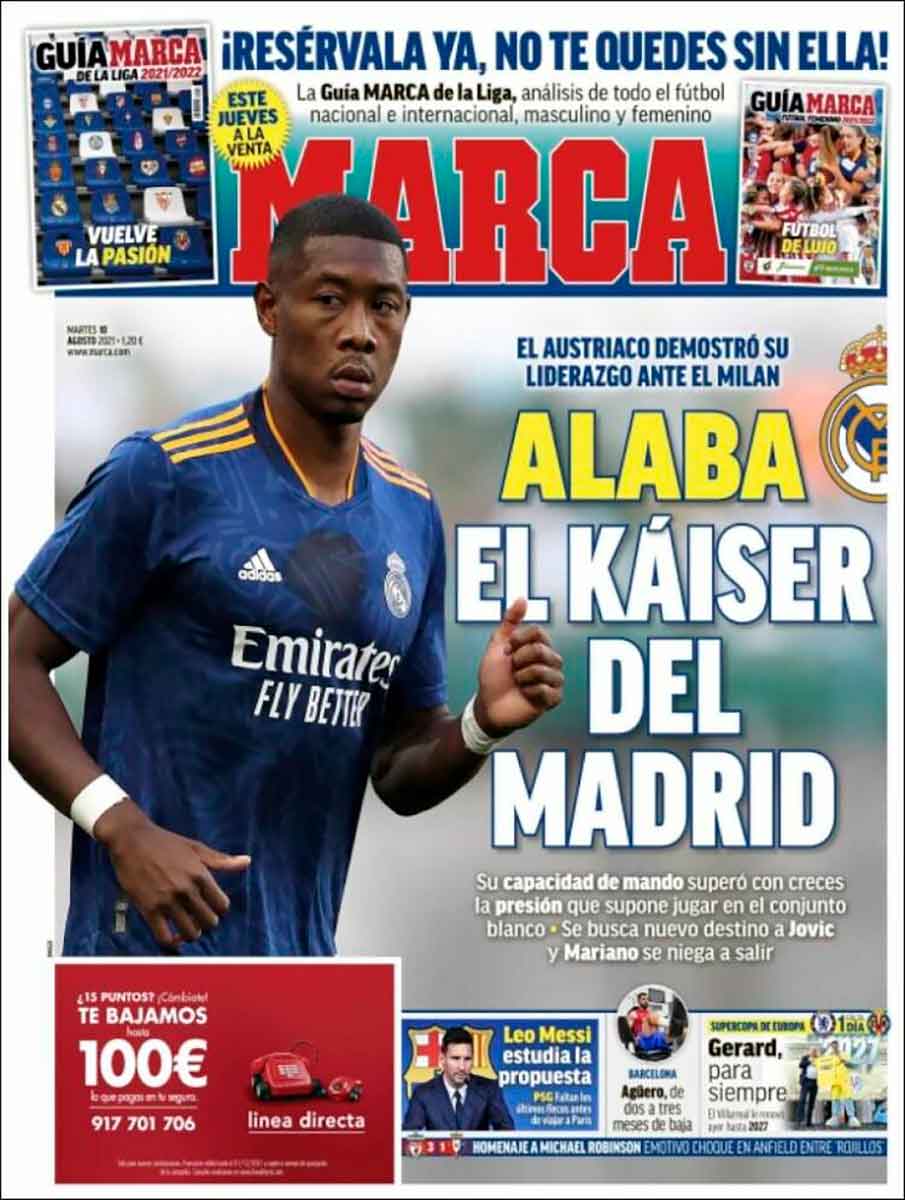 Marca lleva a su portada a David y alaba la capacidad de mando del ex del Bayern, al que apoda como káiser. La verdad es que dejó muy buenas sensaciones en su debut.