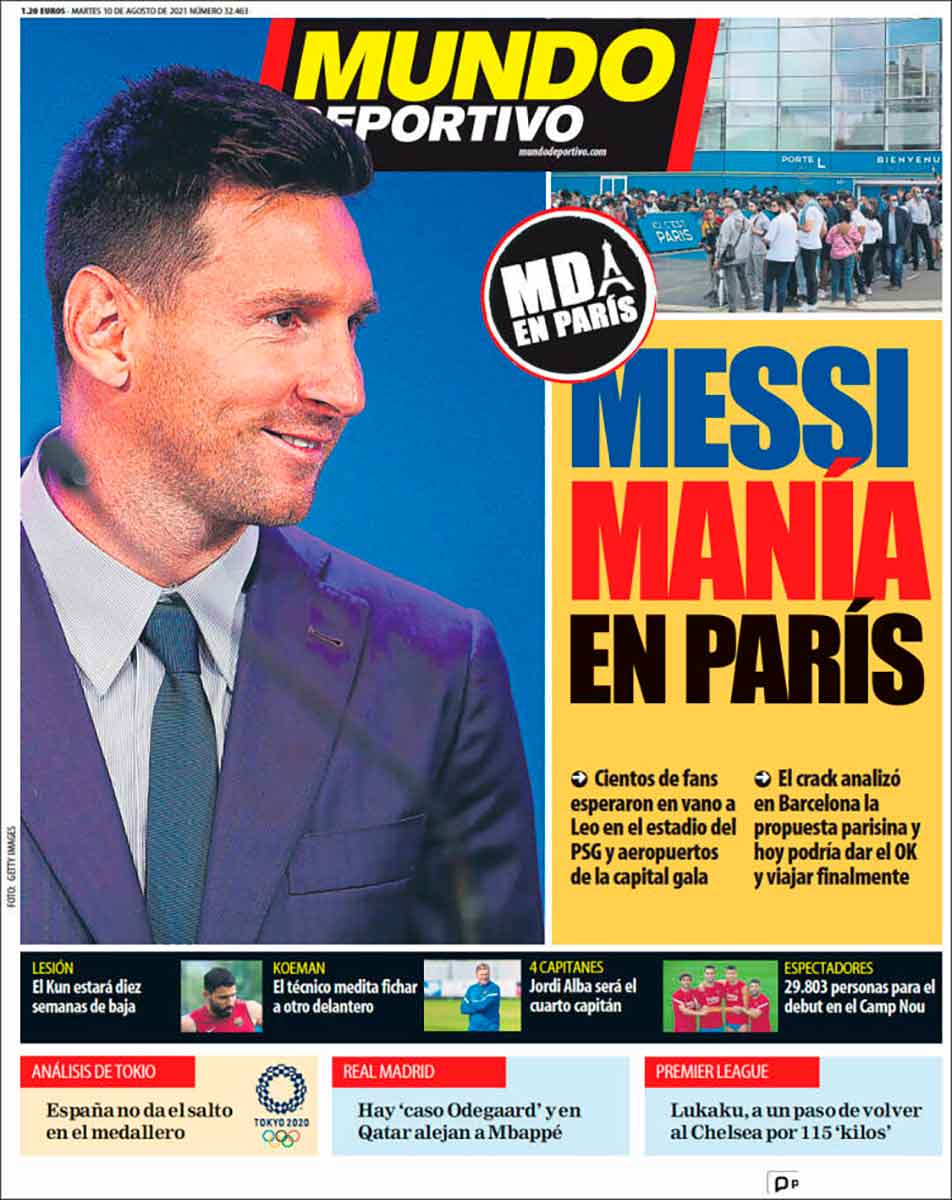En el diario de Godó siguen adulando a Messi hasta después de irse e intentan transmitir en su frontispicio una histeria colectiva propia de la beatlemanía, pero no consiguen pasar de una imagen verbenera cañí, con música a cargo de orquestas que versionan canciones populares de triunfitos. «MD en París» escriben en un sello. A los que pertenecemos a la generación del BUP, MD nos recuerda indefectiblemente al temido «muy deficiente» de las calificaciones.