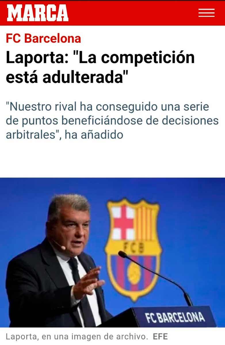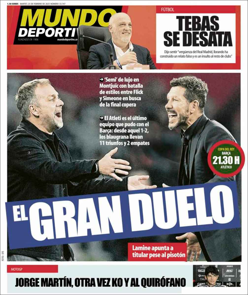 Es realmente irónico que sea Mundo Deportivo, uno de los diarios de cabecera del Barça, quien refleje en su portada las siguientes palabras de Tebas: «El Real Madrid ha construido un relato falso», cuando el falso relator por antonomasia del fútbol español es el FC Barcelona, ayudado, entre otros, por este medio.