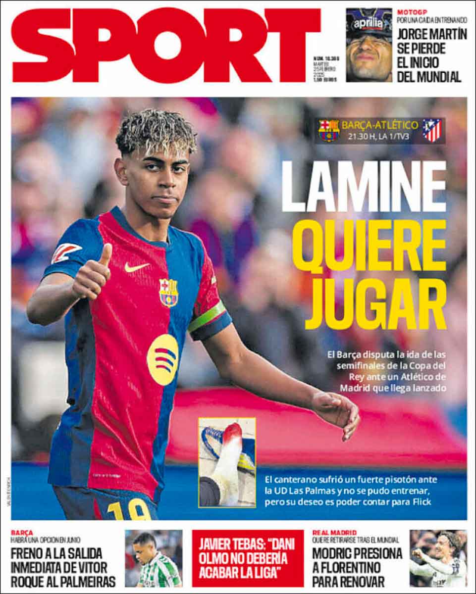 Esquina inferior derecha del Sport : "Modric presiona a Florentino para renovar". Nunca ví mejor demostración para aquello de "Cree el ladrón que todos son de su condición". Son genéticamente incapaces de entender que existen el respeto y la honestidad en las relaciones profesionales e incluso humanas , y cuando lo ven como norma en el Real Madrid les revientan las neuronas.