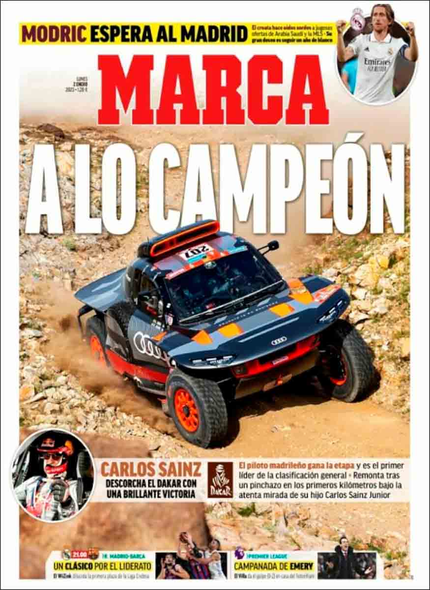 Y poco más, amigos. Que Modric espera que el Madrid le ofrezca la renovación (la deseamos todos, en la esperanza de que el maldito mundial no haya agotado sus últimos restos de aguante físico), que el gran madridista que es Carlos Sainz ha ganado una etapa en el Dakar (enhorabuena), que hay una “cumbre” por Bellingham (la letra pequeña nos deja claro el énfasis excesivo de la palabreja) y que hoy juegan el Madrid y el Barça de los canastos en el mismo Wizink Centre donde el último viernes del año pasado coronaron los Hombres G 40 años de gloriosa carrera.