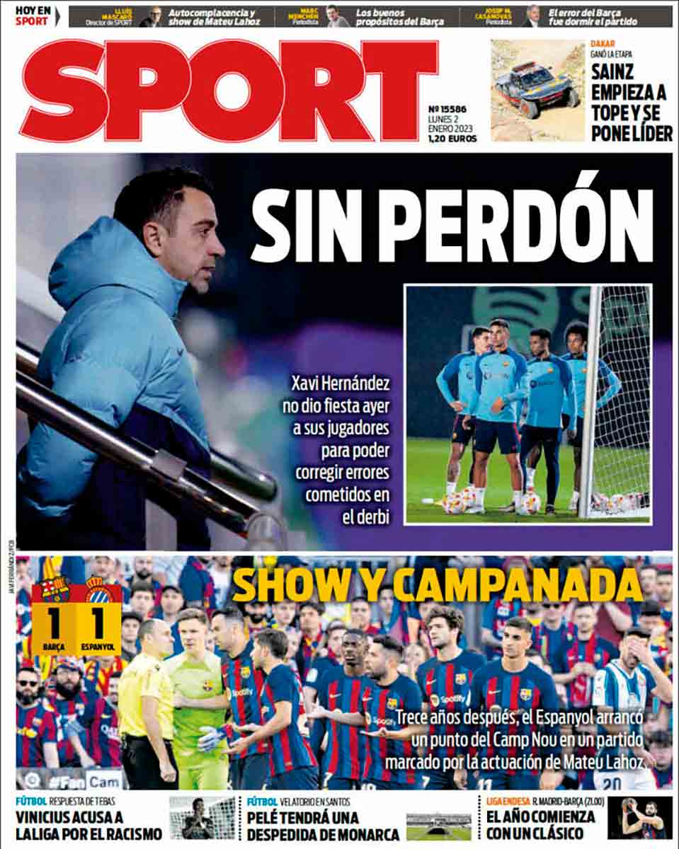 Sorprendentemente, solo Sport dedica un espacio al asunto en estas primeras portadas del año, y lo hace dándole un hueco ridículo en un faldoncillo. El protagonista de la portada de Sport es Xavi Eastwood, perdón, Clint Hernández, trasunto de Tarrasa de William Munny.