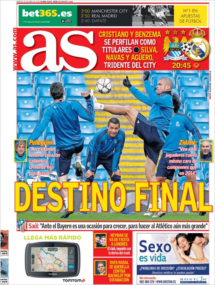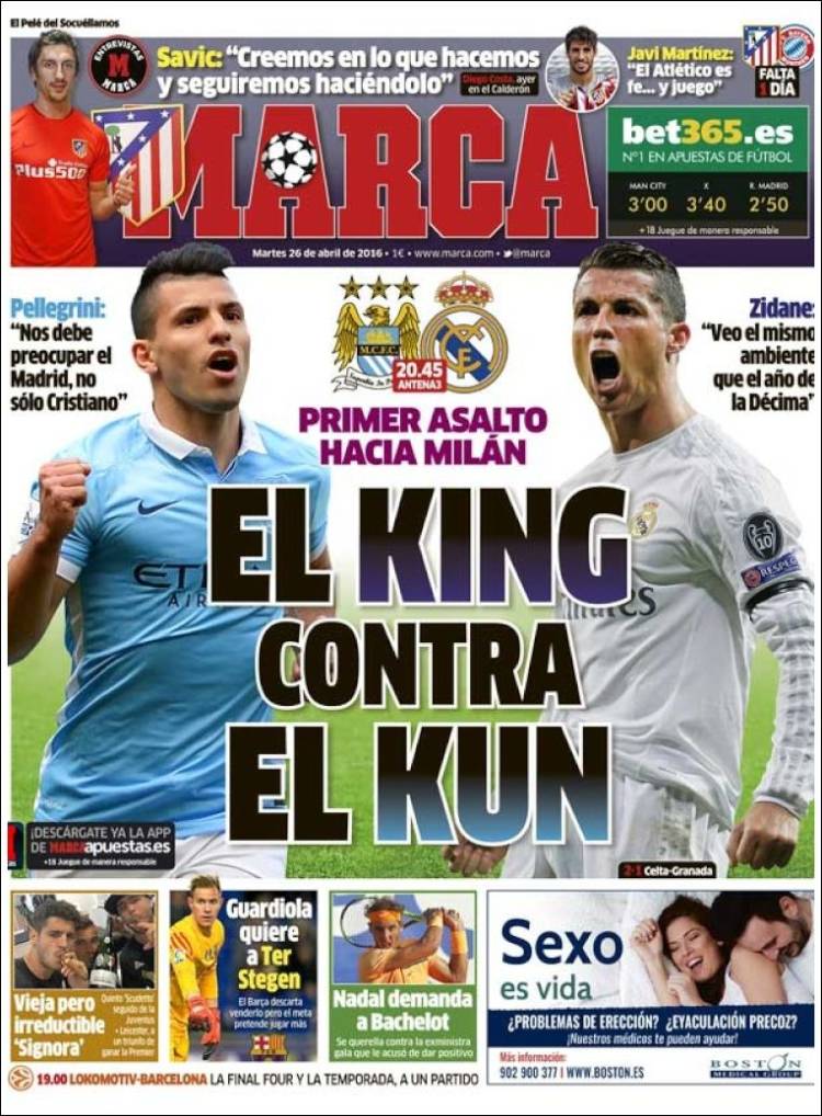 Ahora bien, como el Madrid pierda hoy -Dios no lo quiera- mañana sale a portada completa en los diarios de la esquinita. Ya lo vimos con el Wolfsburgo y muchas otras veces anteriormente.