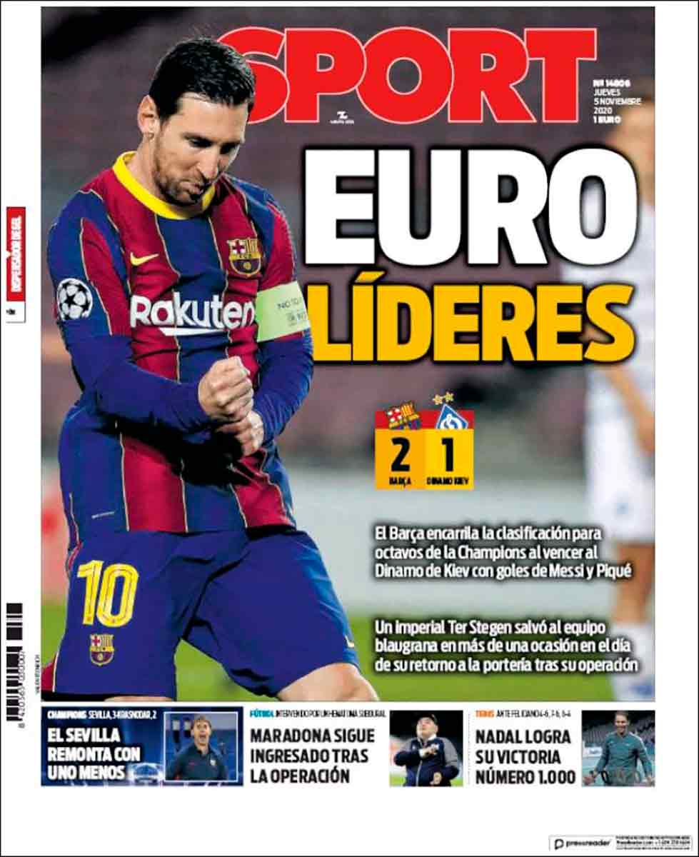"Euro líderes", dice Sport. ¿Se puede ser más b0b0, más cutre, más triste? Se puede y Sport lo demostrará en cuanto tenga ocasión.