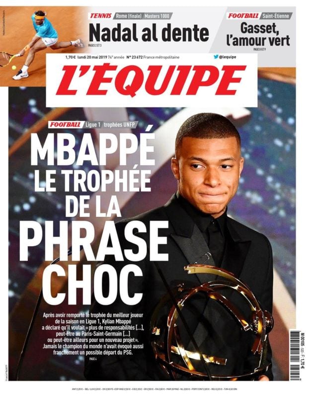 Solo hacía falta ver las expresiones de incredulidad de los presentes para darse cuenta de que las palabras que pronunció ayer Mbappé constituían un auténtico terremoto. Los presentes no eran cualquiera, se trataba de lo más granado del fútbol francés, incluyendo algunos compañeros del PSG y su propio entrenador. El escenario, la gala de premios de la UNFP (Unión Nacional de Futbolistas Profesionales) en la que Kylian recibió el premio a mejor jugador de la Ligue1.