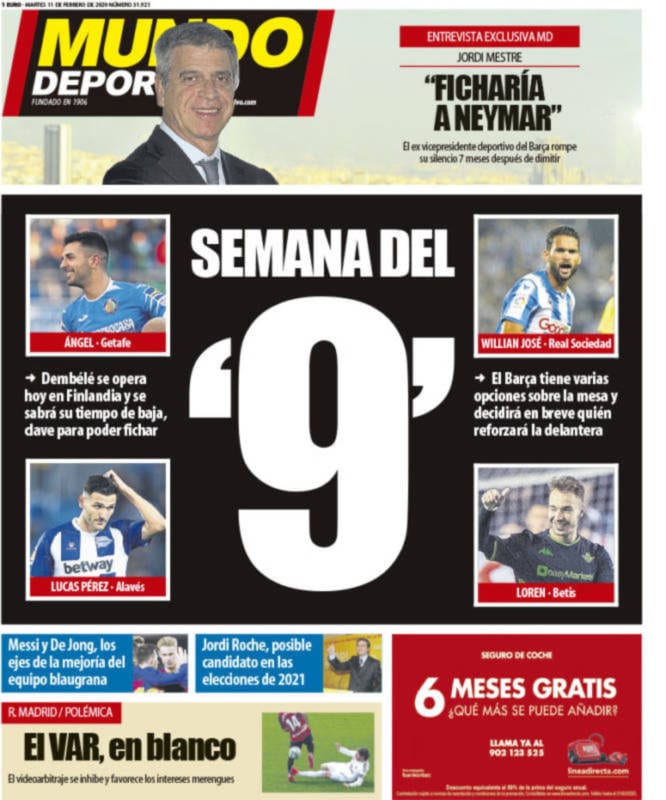 Buenos días. Siempre es emocionante introducirse de buena mañana en el alucinante mundo portadista. Es como un parque de atracciones nuevo cada día. Unas veces empezamos por la atracción más movida y otras por la más divertida. En otras ocasiones, no sabemos qué hacer. Miramos la portada de Mundo Deportivo y nuestros ojillos maliciosos (qué si no pueden ser, cómo pueden mirar si no de esa manera tan retorcida) se van hacia el recuadrito inferior izquierdo en el que aparece la inefable imagen del pasado domingo en la que Ramos impacta con los tacos en el tobillo de un jugador osasunista. “El VAR en blanco”, dice. Y subtitula: “El videoarbitraje se inhibe y favorece los intereses merengues”. Es difícil encontrar una información tan manoseada. Parece la teta de la estatua de Julieta en Verona. Pero no les da apuro.