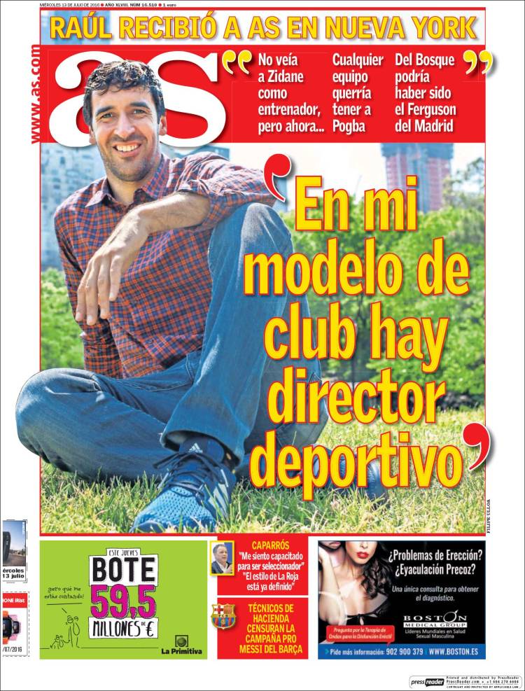 En mi modelo de club hay director deportivo, dice Raúl en portada. Ahora no hay ninguno, parece decir As en elipsis. O podría haberlo. Y no ser otro que el propio Florentino. Incluso podríamos plantearnos qué cojones es esto del modelo, porque para no tener ninguno desde tiempos inmemoriales, el Real Madrid Club de Fútbol ha seguido cosechando títulos en todas las épocas; en las de bonanza, en las desgraciadas etapas catastróficas, incluso, y, cómo no, en periodos de entreguerras. Esto del modelo nos lo vendieron en el rinconcito, donde tan pronto te dan un garbeo por La Masía como te explican lo positifo de disponer de la mitad de los Países Bajos en tu plantilla. Lo peor es que algunos compraron esto del modelo, al tiempo que otros lo utilizan para sermonearnos. Floren no tiene director deportivo. Sacrilegium.