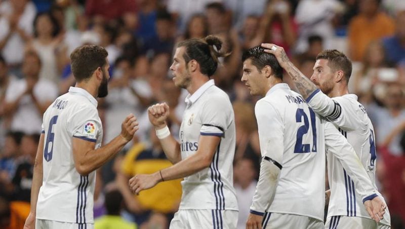 Era el esplendor de la jugada a balón parado. Sergio Ramos, fino y tirante, amortiguando de virtuosismo las flechas de Kroos. Dos a uno. A Morata le buscaban sus amigos en la celebración como si se fuera a retirar y fue a marcar, otro de cabeza, mucha cabeza, como come el avestruz y con el gesto del avestruz. Morata ni pestañea. Un poco tieso, rígido, alto y emplumado.