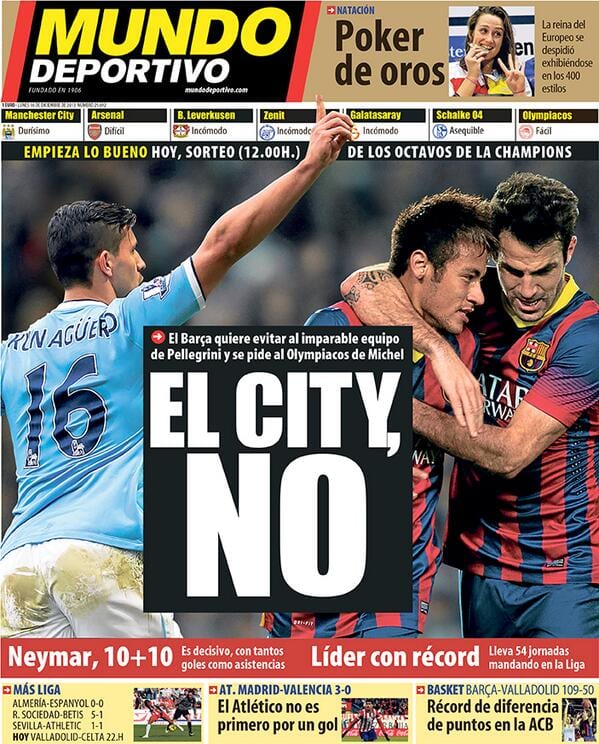 -Chollo habrá tenido el City, porque el peor rival posible según la entendida prensa cavernaria, era el Madrid. Lo cual no explica muy bien el mar de bilis que hay por Barcelona ni que se hayan disparado los cagómetros.