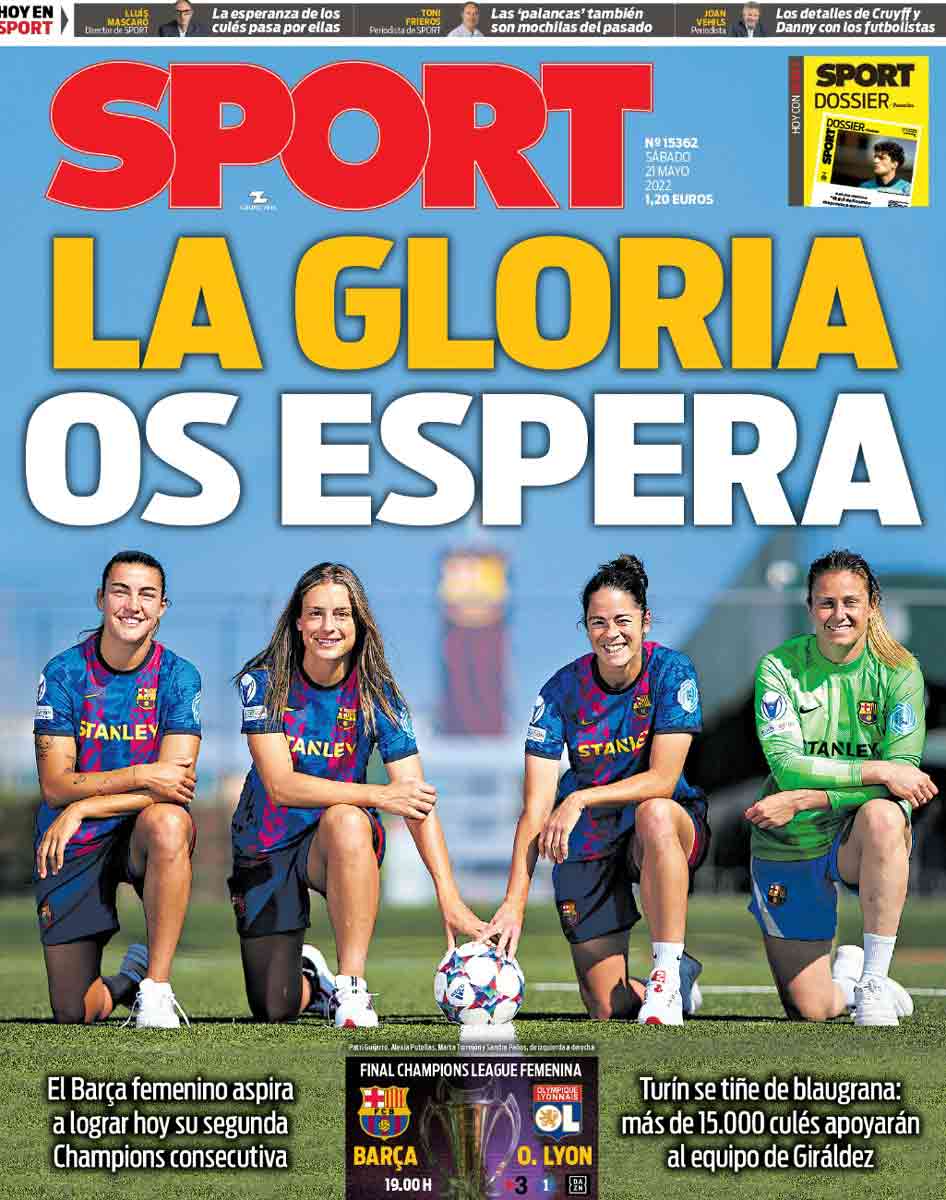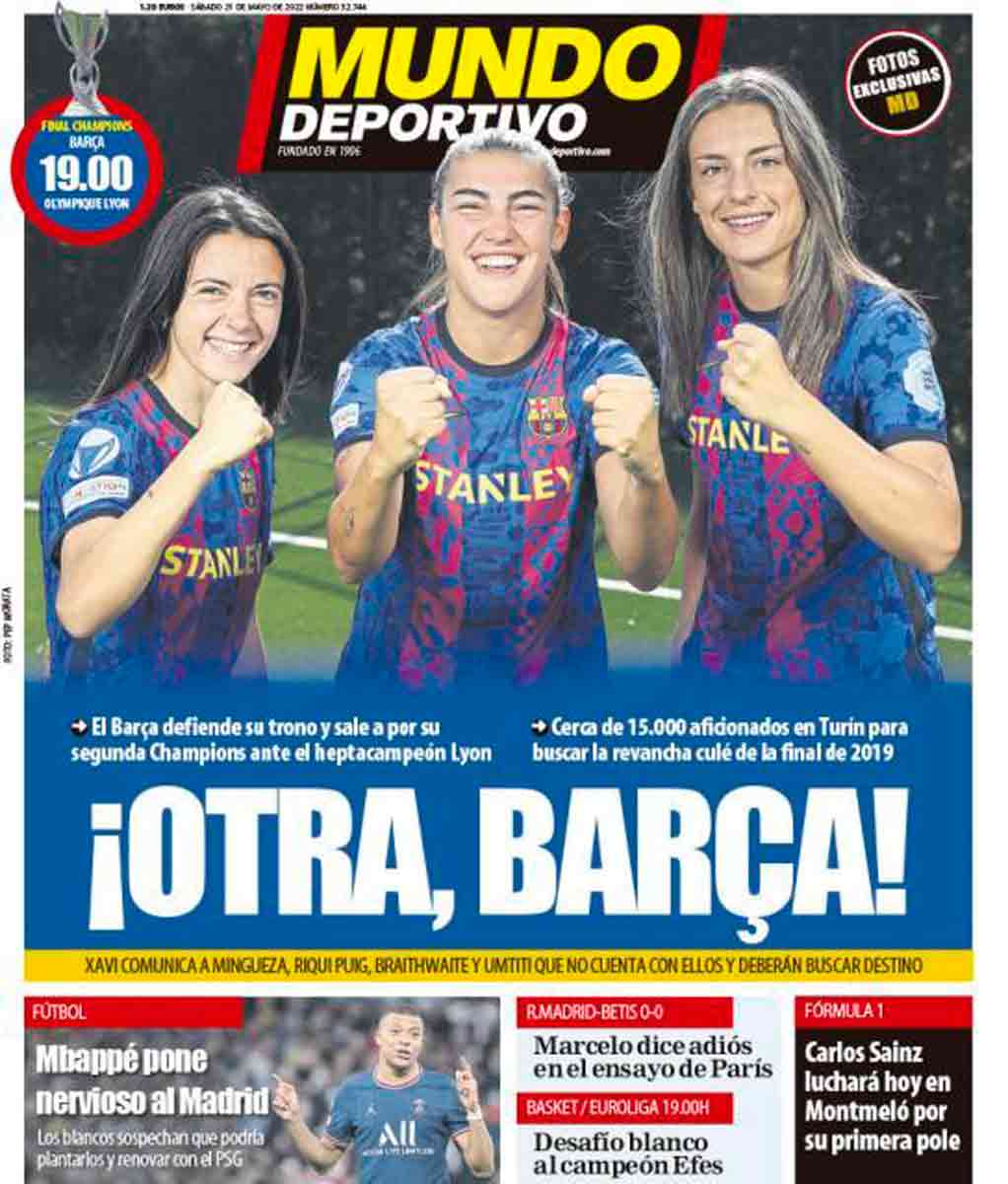 Os dejamos con las portadas de la prensa cataculé, dedicadas a la final de la Copa de Europa de su equipo de fútbol. El bueno, el femenino, no el del Jardiner. La del Mundo Deportivo con la coma del vocativo bien puesta por una vez: