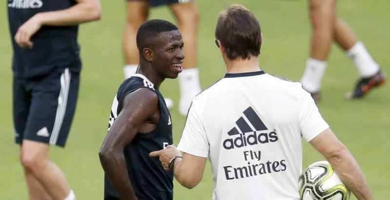 El primer contratiempo vino de la mano de Julen Lopetegui. El técnico vasco nunca creyó en los planes del club con respecto a Vinicius, lo cual derivó en un pulso entre ambas partes y con el jugador, en el limbo de la grada, en varios encuentros. Gran parte de la inestabilidad que fue acumulando Lopetegui tuvo que ver con un intento por ganarse al núcleo duro del vestuario apostando, desde el principio y unánimemente, por unos jugadores que evidenciaban un desgaste físico – por el Mundial – y mental – por todo lo ganado, por la cita mundialista y por la sacudida que provocó la pérdida de Zidane y Cristiano – y que no respondieron – quizás porque no podían – a lo que el entrenador esperaba de ellos.
