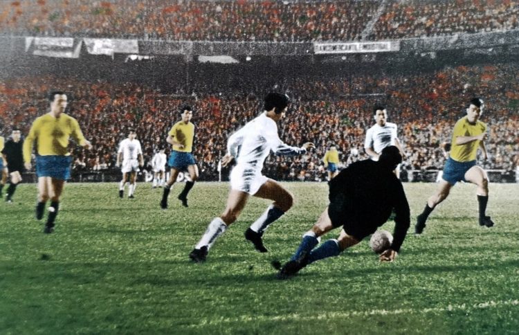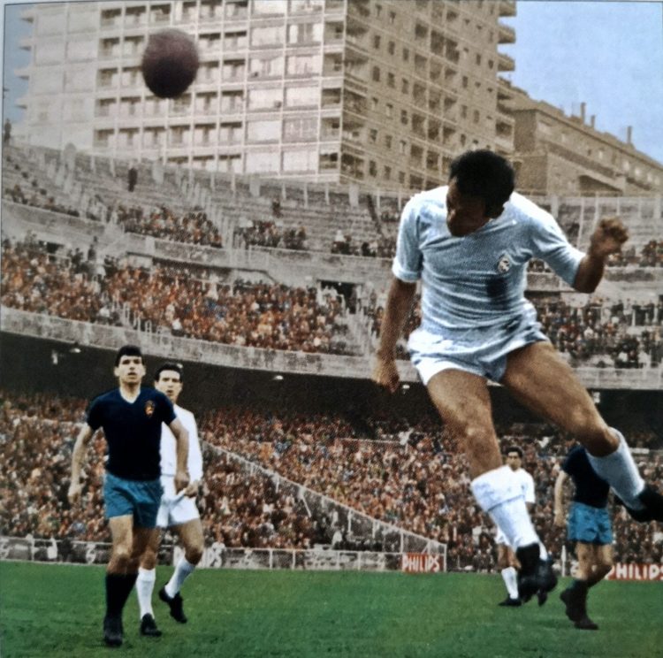 13ª Liga. 20/4/1968 Estadio Santiago Bernabéu (Madrid). Una Liga que tuvo tres aspirantes: Real Madrid, Barcelona y un sorprendente UD Las Palmas. Los capitalinos llegaron al liderato en la jornada 16 y resistieron las embestidas culé y canaria. Precisamente ante el equipo amarillo se confirmó el título en la jornada 29 tras ganar por 2-1 en una gran noche de Betancort.
