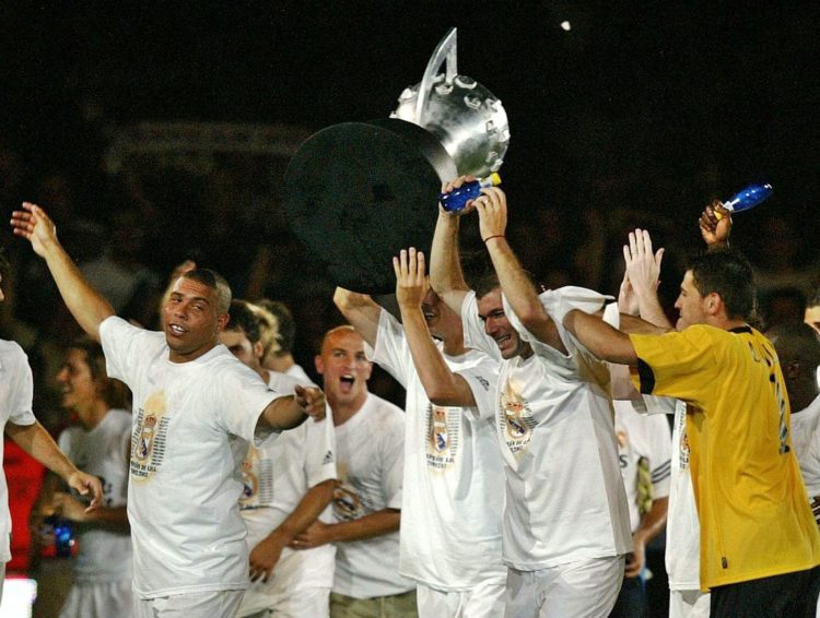 29ª Liga 22/6/2003 Estadio Santiago Bernabéu (Madrid). La Liga de Ronaldo. El brasileño aterrizó como campeón del mundo para ensamblarse a la perfección en el campo y en el vestuario. Sin embargo, el camino hacia el triunfo fue complicado y resultó clave el pinchazo de la Real en Vigo. En la última jornada el Madrid no perdonó al Athletic y venció 3-1 para ser campeón.