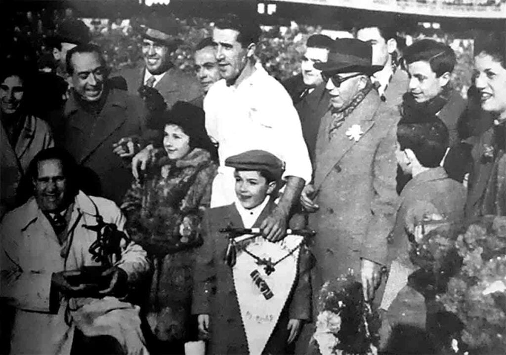 Juanito Monjardín, fue una de las grandes estrellas del Real Madrid en los años 20. Un delantero con un remate de cabeza primoroso y además un “gran madridista” en palabras de su íntimo amigo Santiago Bernabéu. Su homenaje se retrasó casi dos décadas desde su retirada y no llegó hasta el 31 de octubre de 1943. Se aprovechó los partidos por la paz tras todo lo acontecido por el 11-1 de la Copa en junio frente al Barça, para que el público madrileño mostrase su respeto y admiración por el ‘El Nene’. Los culés antes del choque realizaron varias excursiones y se presentaron en Chamartín con un campo en muy malas condiciones por las recientes lluvias caídas. En aquel equipo figuró su capitán Raich y otras figuras de la entidad catalana como Balmanya, Escolá, Mariano Martín o César. El Real Madrid por su parte alineó a Bañón; Arzanegui, Corona; Elías (Tormo 40’), Ipiña, Huete; Alsúa, Alonso, Pruden, Barinaga y Cantero. Los dos equipos a pesar de las circunstancias del terreno de juego se afanaron por agradar y dar espectáculo a los aficionados presentes en el estadio de Chamartín y el resultado final fue 1-1. El arquero blanco Bañón se erigió en el más destacado de la tarde y el gol blanco lo anotó Chus Alonso.