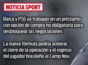 Fijaos en el faldoncillo que Sport otorga a Neymar, según el cual la llegada de Ney al equipo de Valverde se complica por momentos toda vez que el futbolista ha sido ofrecido a "United, Madrid y Juve". El contraste con el Sport de hace sólo dos días es como para morir de risa, tía Felisa.