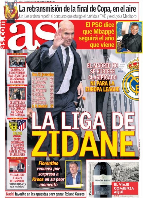 Por si la venganza de consignar que esto ha sido POR SORPRESA y EN EL PEOR MOMENTO del alemán no fuese suficiente, As nos cuenta a cinco columnas que el tramo de Liga facturado por el Madrid bajo el mando de Zidane ha sido penoso. Ya lo sabíamos, pero nunca está de más recalcarlo para tomarse cumplida revancha con quien es capaz de renovar a Kroos sin antes avisar a la Ouija de que no tuitee invenciones.