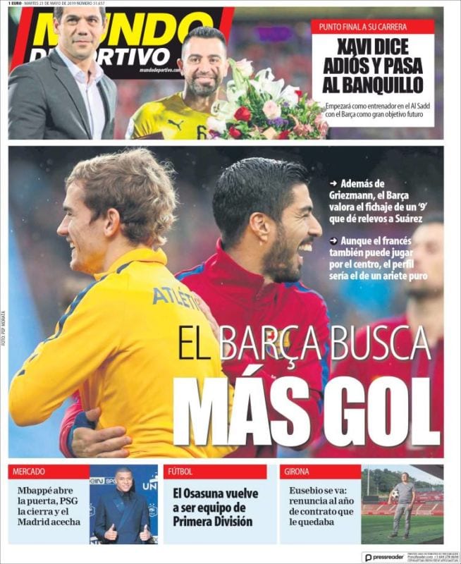 Por lo demás, el resto de portadas del día oscilan entre el vodevil de puertas y ventanas de Mbappé y Neymar en Marca a la incipiente trayectoria como entrenador de Xavi Hernández, quien declara que no le asusta que le comparen con Guardiola. De momento, Hernández va a entrenar y reivindicar la excarcelación de los políticos catalanes presos desde la ejemplar democracia catarí hasta tener la suficiente experiencia como para poder entrenar y reivindicar la excarcelación de los políticos catalanes presos desde la ominosa dictadura española.