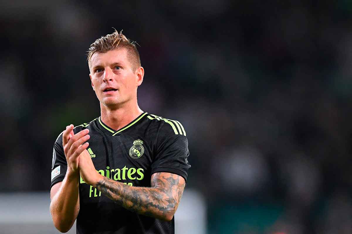 Como buen crooner Toni pisa fuerte, pisa estable. No tropieza, no se perturba. Saluda lo justo y sonríe si el receptor está preparado para recibir su sonrisa. La balada comienza en el momento del pitido, no antes. Nada de parafernalia ni estridencias. El ritmo fluye a través de él y si hay que elevar el tono es porque la noche lo pide. Los esfuerzos se miden, el sudor se seca con un pañuelo blanco. Si el saxo desentona, lo mira fijamente un segundo y todo vuelve a fluir. Los crooners son fiables, precisos. Si lanzan un beso es porque están seguros de que llegará a su destino. Si señala, estate atento, porque algo va a pasar. Eso lo sabía Vinicius contra el Liverpool; el alemán fijó la mirada, señaló y todo acabó en el primer gol importante en la Champions del brasileño. Todo orquestado. Y encima el blanco le sienta como a un dandy con su mejor esmoquin en las grandes veladas. Tiene percha.