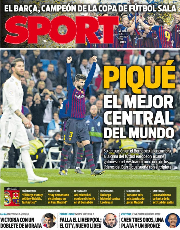 Dice Sport, por último, que Piqué es el mejor central del mundo. Con permiso de