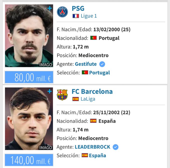 Dice Transfi que Pedri cuesta 60 millones de euros más que Vitinha.