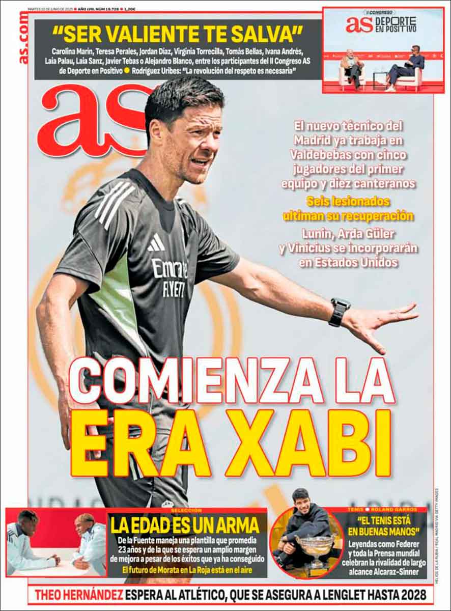 Lo que nos importa a los madridistas: «Comienza la era Xabi». El nuevo técnico del Real Madrid dirigió ayer su primer entrenamiento y pasó en Valdebebas más horas currando que el guionista de Cuéntame.