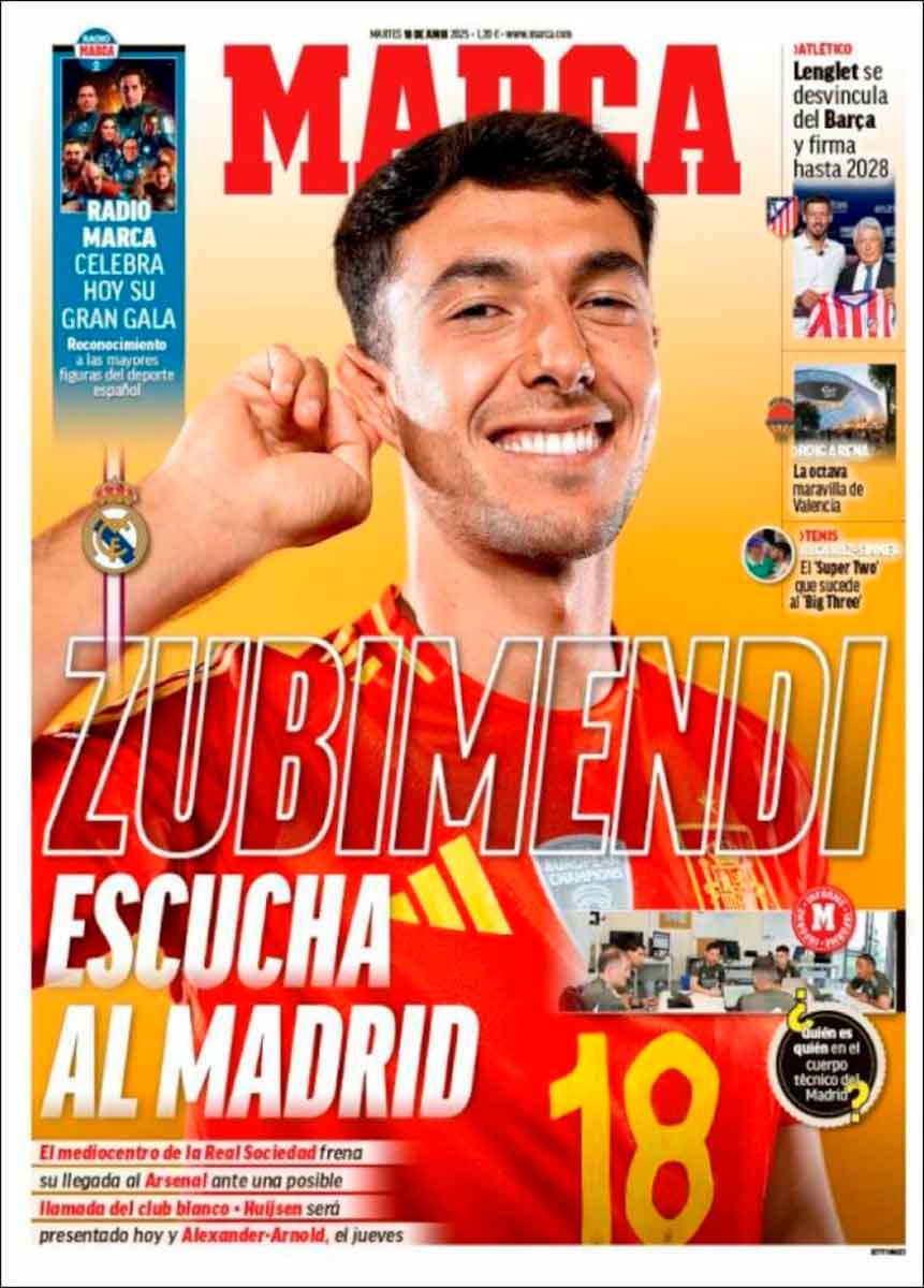 Tampoco hacen referencia, salvo una frase en Marca, a la presentación de Huijsen con el Madrid, que tendrá lugar en un rato, a las 12:30. En La Galerna os la contaremos. También podéis leer esta pieza de Gonzalo Páramo sobre el central publicada hoy mismo.