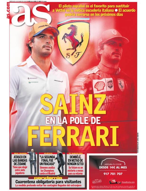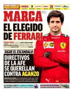 Bandera a cuadros para la prensa deportiva. Si parpadeas te lo pierdes, que diría el calvo Lobato, tan amante de los lugares comunes. Los motores rugen. Albricias. Les compadecemos. Tras tropecientos días ya de pandemia, por fin nuestro cuatro diarios favoritos pueden abrir con una noticia que, tal día como hoy y sin que sirva de precedente, debe ser completamente veraz en la medida en que ninguna cabecera ha faltado a su cita con Carlos Sáinz Junior en Maranello. Nos ha faltado, eso sí, un sexenio para poder cumplir el sueño lingüístico de este humilde cronista que pasaba por escribir Luca Cordero di Montezemolo en un portanálisis mientras se soltaba el pelo desde su confinamiento.