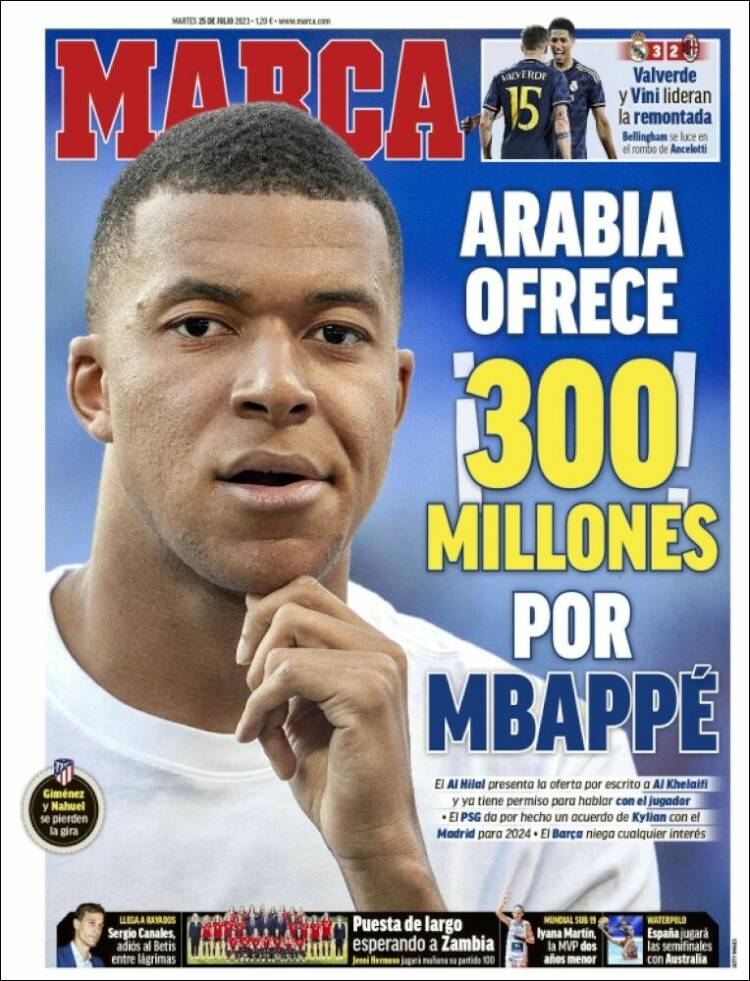 Os dejamos con Marca y As, que vienen con Mbappé (qué raro) y la gira USA del Madrid respectivamente.