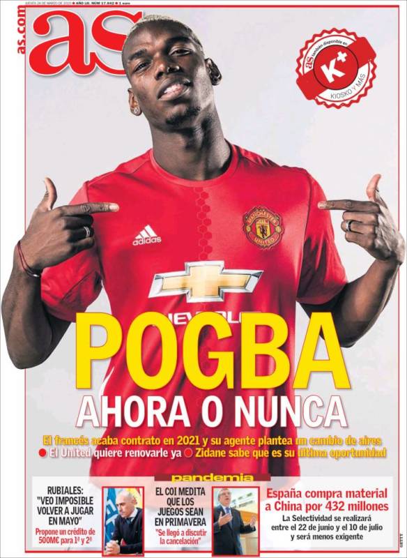 De igual manera, y si bien los fundamentos económicos del Real Madrid le permiten sortear este brutal imprevisto con muchas más posibilidades de éxito que su rival catalán, tampoco está la mente puesta en Pogba, ni en las gestiones pendientes que refiere Marca.
