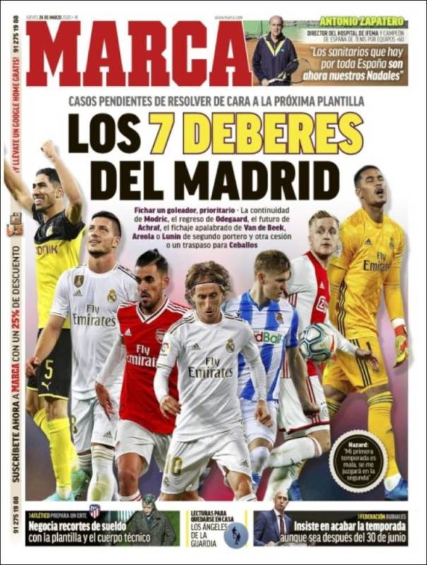 6. Veremos en alguna de estas portadas la donación monetaria del Madrid a la Comunidad? Saldrá que también ha cedido el estadio como centro de aprovisionamiento médico?